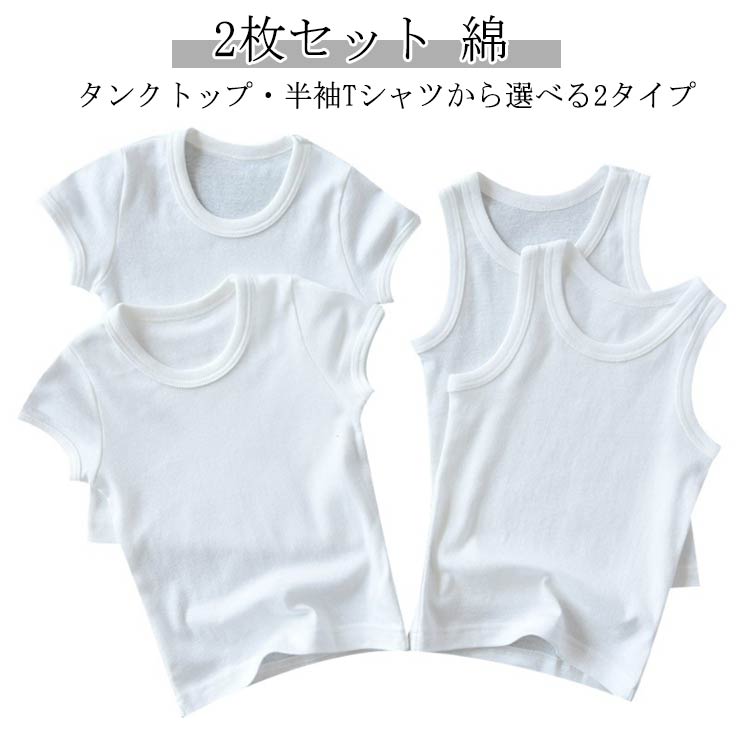 綿の優しい肌触り♪ 2枚組 カットソー シャツ タンクトップ 白 ホワイト ベビー 男の子 女の子 キッズ 綿下着