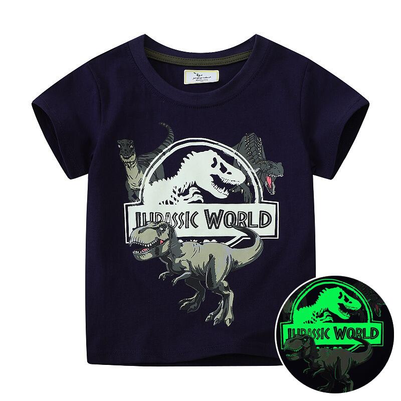 子供服 男の子 夜光 Tシャツ 98%綿 光る 半袖 トップス ボーイズ キッズ 夏服 恐竜柄 上着 普段着 男児 蓄光 カジュアル ファッション 柔らかい 可愛い 快適 丸襟