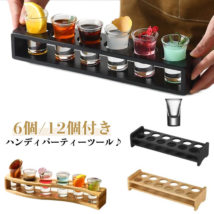 ショットグラスホルダー グラス 6個 12個 木製ショットホルダー 12 6 テキーラ ウォッカ ウィスキー パーティー用 レストラン バー