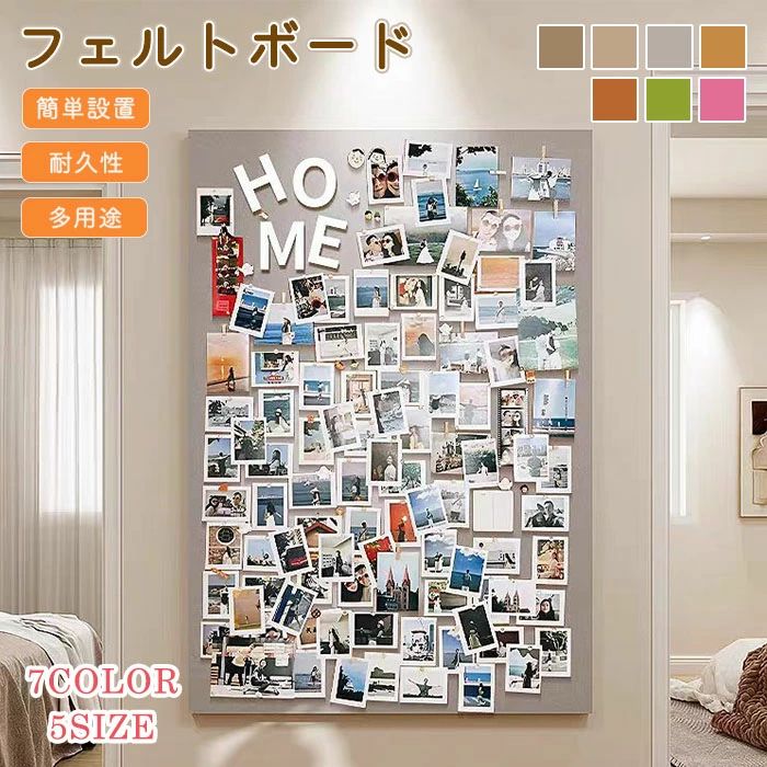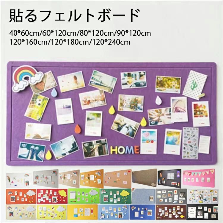 コルクボード 壁掛け 写真 穴不要 サイズオーダー可能 ボード 掲示板 多機能 写真壁 案内板 フォトフレーム フェルト製 ウェルカムボード ハリペタ 壁貼りフォトフレーム
