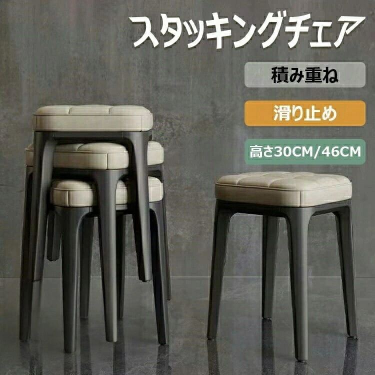 スタッキングチェア 四角 ダイニングチェア 椅子 玄関 チェア スタッキングスツール 積み重ね収納 腰掛け スツールチェア クッション付 レザー 耐久性 滑り止め 化粧椅子 プラスチ 耐荷重200kg