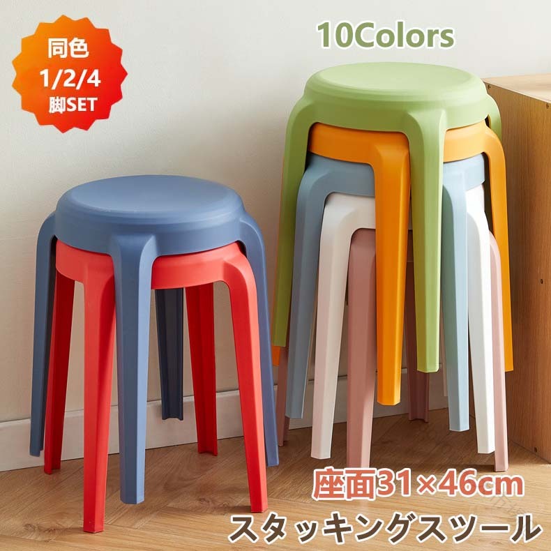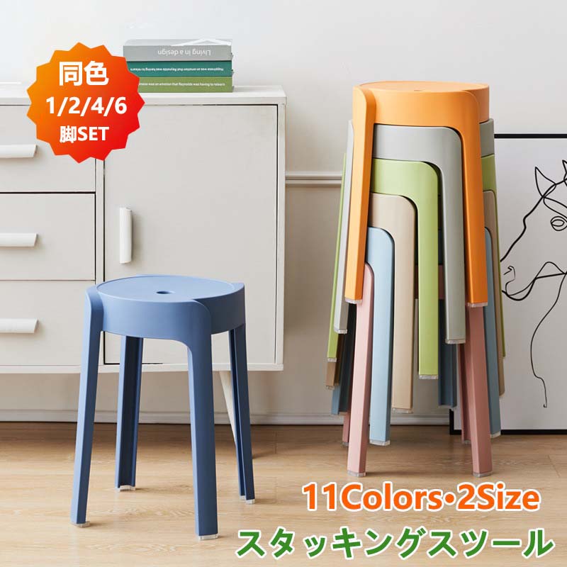 スタッキングチェア 高さ46cm スタッキングスツール 11色 屋台イス 椅子 スツール プラスチックスツール コンパクト キッチン ダイニング おしゃれ シンプル リビングルーム 2 ラウンドベンチ