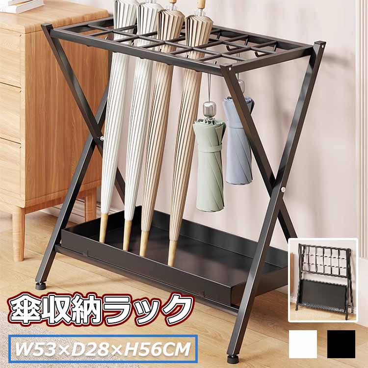 傘立て 業務用 大容量 折りたたみ式 ブラック かさたて 玄関 おしゃれ 傘だて オフィス 店舗用 水受け皿付き W53×D28×H56cm ホームドア かさ置き台 商用傘用アスフ 傘収納棚