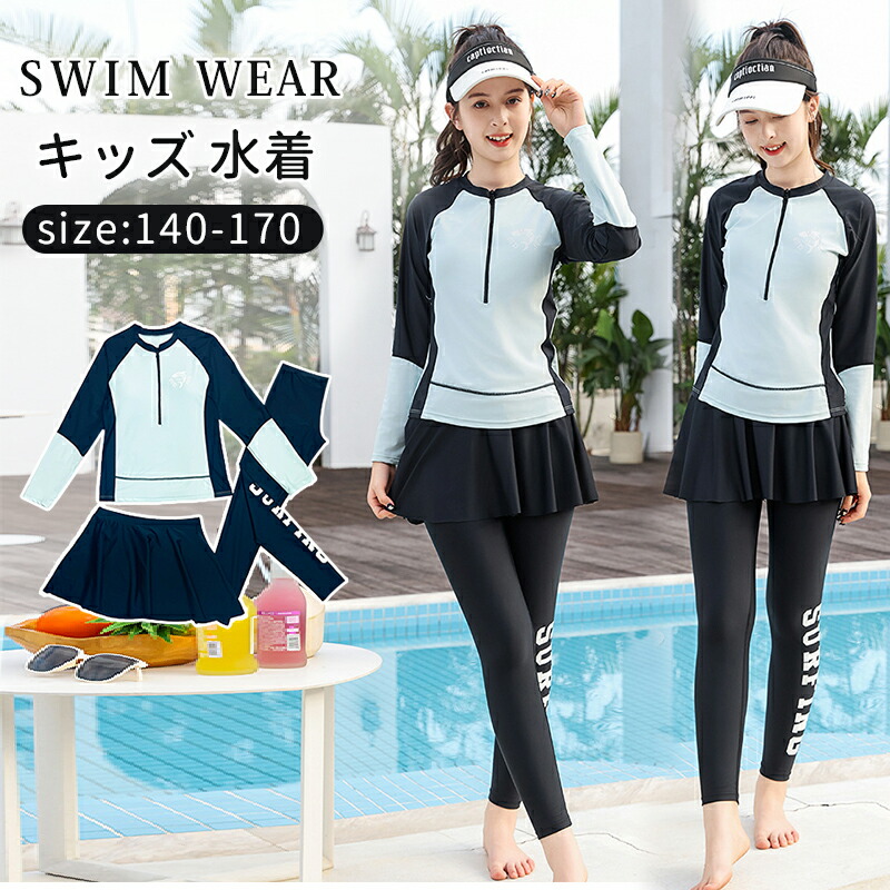キッズ 水着 女の子 ジュニア フィットネス水着 ラッシュガード セパレート スカート 3点セット レギンス長袖 レディース水着 ガールズ 水遊び プール 海 かわいい 体型カバー 大人も 動きやすい