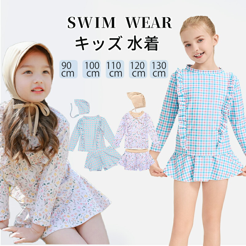 新品追加 水着 キッズ 女の子 子供水着 花柄 ラッシュガード 子供用 セパレート 3点セット キャップ付き フレアスカート ベビー水着 女児 ガールズ スイムウェア 日焼け防止 総柄 幼稚 UV対策