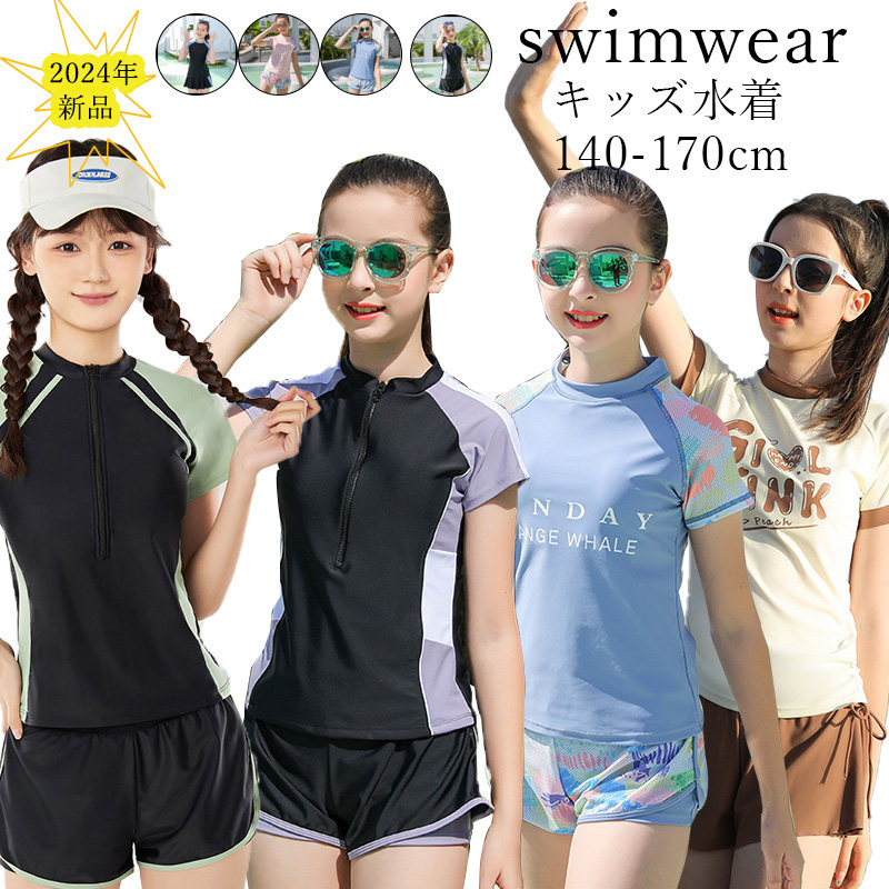 2024年3色追加 入荷済み キッズ 水着 女の子 ジュニア フィットネス水着 ラッシュガード セパレート ショーツ 2点セット 半袖 レディース ガールズ 水遊び 海 動きやすい かわいい プール