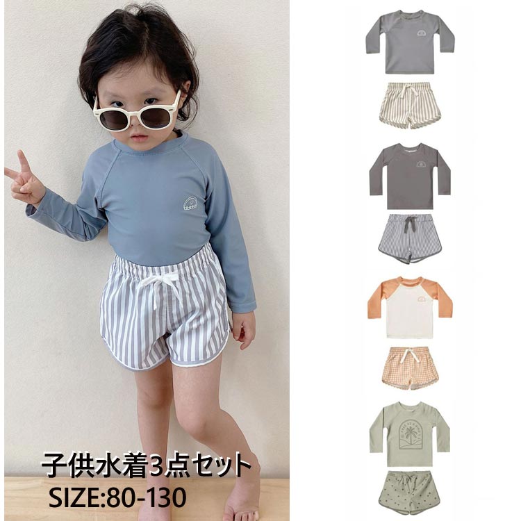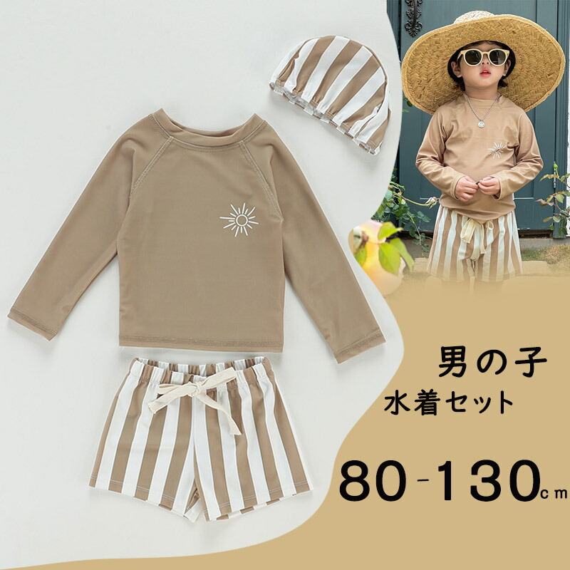 3点セット ベビー 水着 男の子 みずぎ 上下セット 長袖 ラッシュガード セットアップ 幼稚園 小学生 キッズ水着 ジュニア 子供 スクール水着 スイムウェア スイミング 水遊び 可愛い 海 プール