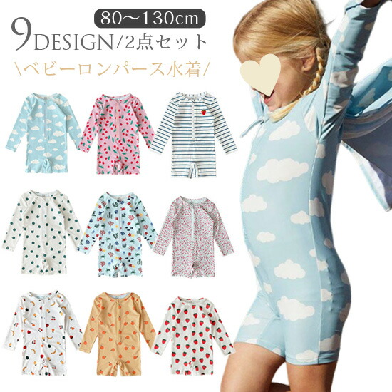 ベビー 水着 キッズ 帽子つき 2点セット UVカット ベビースイミング ワンピース 女の子 子供 ジュニア かわいい 80cm 90 100 110 120 スイムウェア 海プール スイミン 130