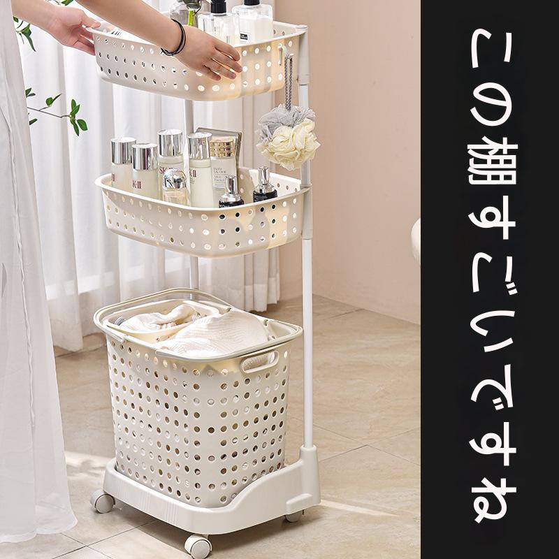 ランドリーバスケット キャスター付き 3段 おしゃれ 収納ラック 洗濯かご ランドリー収納 洗濯物入れ バスケット スチール 大容量 持ち手付き ワゴン 脱衣かご シンプル 新生活 収納用品 洗面所