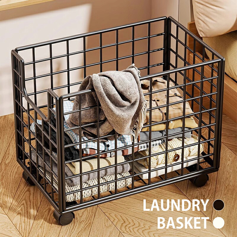 折りたたみ ランドリーバスケット 45L キャスター付き ワイヤーバスケット 洗濯カゴ おしゃれ キャスター スリム 25cm 収納 バスケット 折り畳み ランドリー