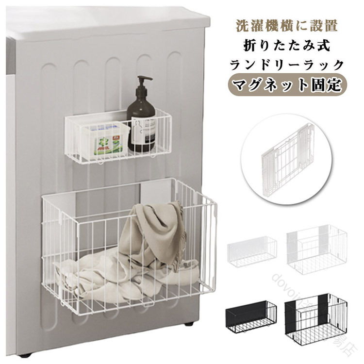 洗濯機横収納 マグネット式ラック 賃貸でも安心 折りたたみ便利 通気性抜群 タオル収納 省スペース 大容量バスケット 洗濯物入れ おもちゃ整理