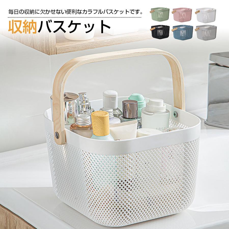 バスケット 買い物かご お風呂カゴ 木製ハンドル付き 多機能収納かご 野菜 果物かご シャワーバスケット 省スペース 便利 小物収納