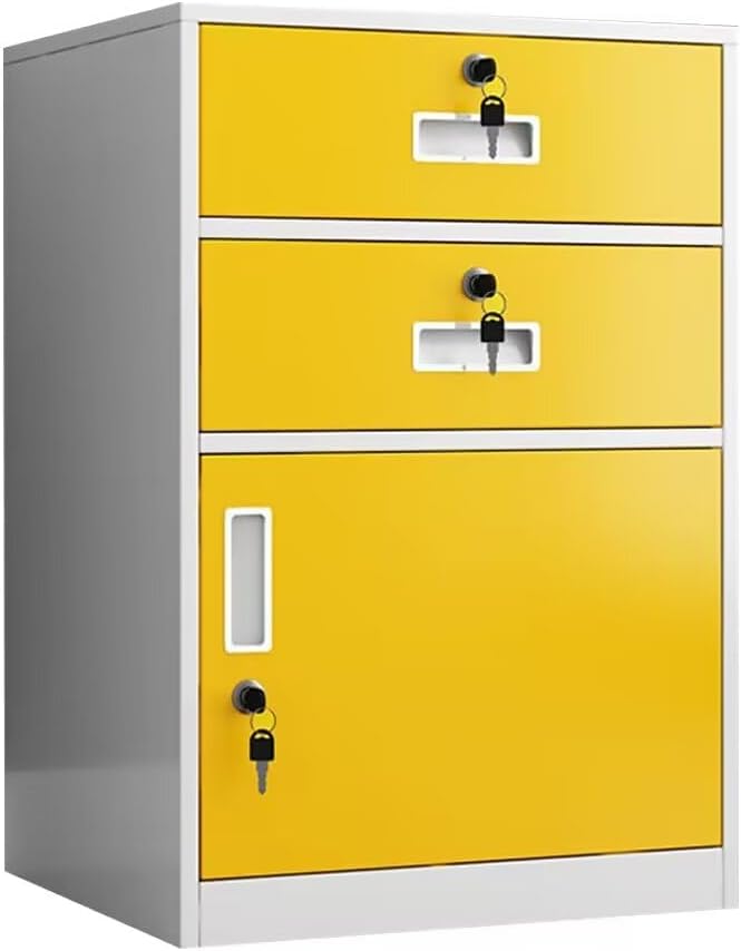 デスクワゴン オフィスワゴン 鍵付き 組立不要 スチール製 完成品 キャビネット サイドワゴン 袖机 デスクサイド 2段引き出し イエロー 高さ65*幅44*奥行39cm 耐荷重200kg
