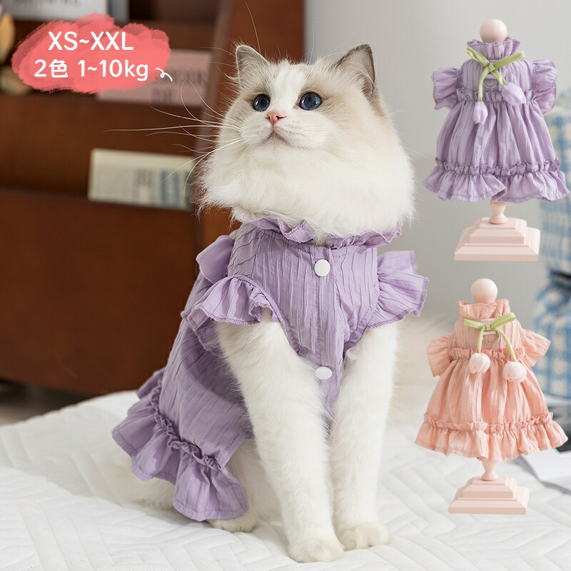 猫 夏服 ペットウェア 服 夏用 キャットウェア ワンピース ノースリーブ 可愛い 姫風 かわいい 犬服 ペット服 春 夏 秋 猫のドレス お散歩 お出かけ 室内 軽量 脱着簡単 S M L XS
