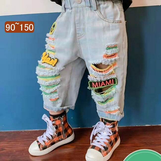 韓国子供服 春 夏 秋 かっこいい ボトムス パン キッズ デニムパンツ ダメージ加工 ジーンズ ファッション 男女兼用 パンツ 男の子 女の子 長ズボン ロングパンツ