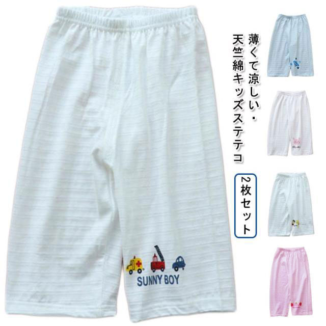 ステテコ キッズ 2枚セット 天竺綿 綿竹レーヨン 薄手 涼しい 部屋着 ルームウェア パジャマ 下 7分丈 七分丈 男の子 女の子 リラックスウェア 快眠 90 100 120 130 14 110