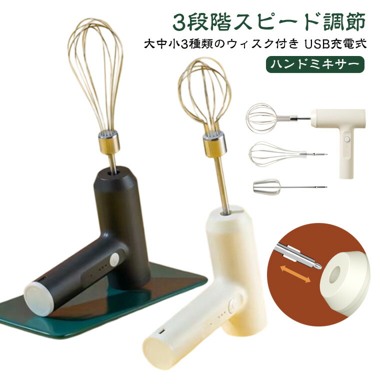 ハンドミキサー 小型 泡立て器 電動 コードレス 3段階スピード調節 ミキサー 充電式 キッチン用 コンパクト 速い 軽い 強力 ホイッパー ホイップ クリーム お菓子作り 誕生日 バレンタイ ケーキ