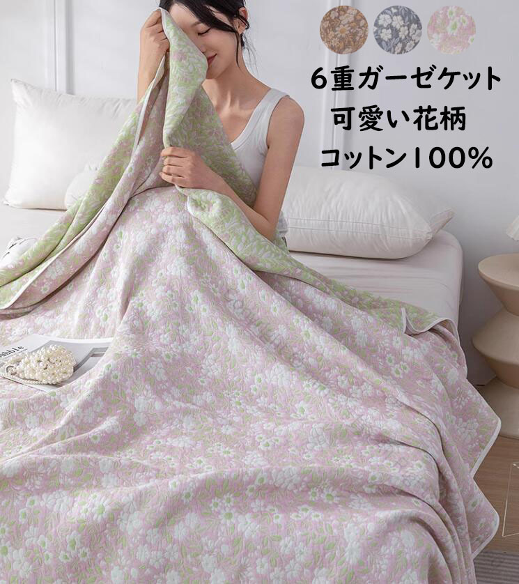 5重 ガーゼケット シングル タオルケット 花柄 綿100% 150cm*200cm 200cm*230cm 5重ガーゼ 夏掛け 肌掛け 涼感 通気性 ガーゼタオルケット 肌掛け布 吸水