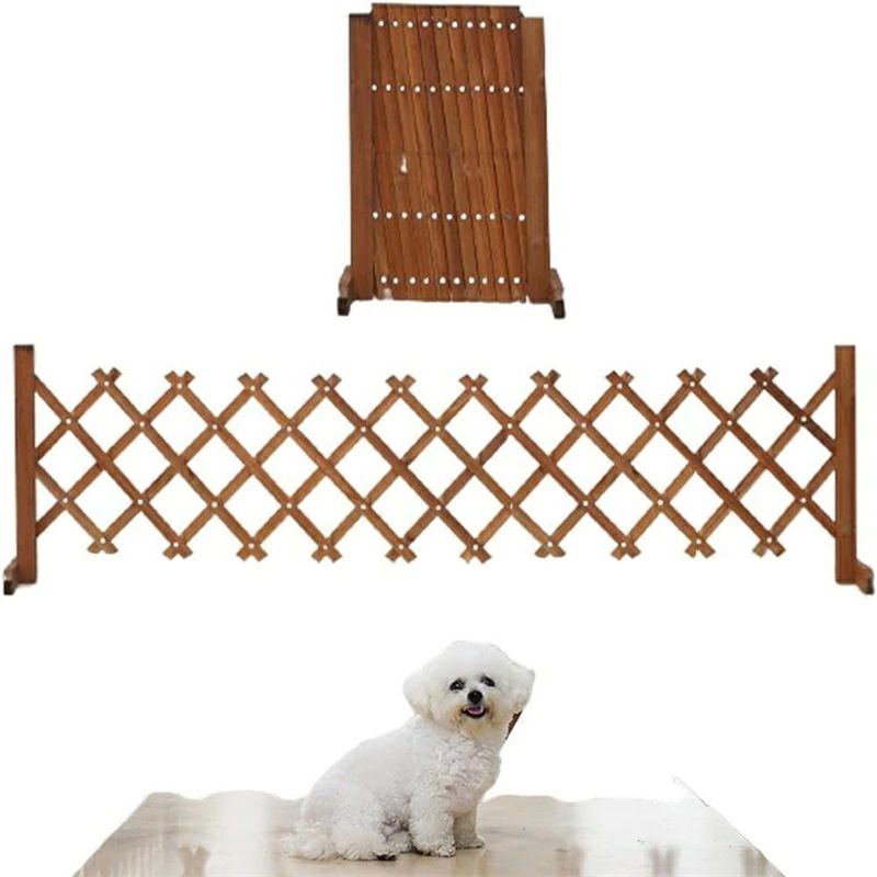 ベビーゲート 置くだけ ペットゲート ペットフェンス 木製 伸縮 木製ゲート 折りたたみ おくだけ設置 自立式 軽量 ゲート 柵 室内 階段 ブラウン 小型犬