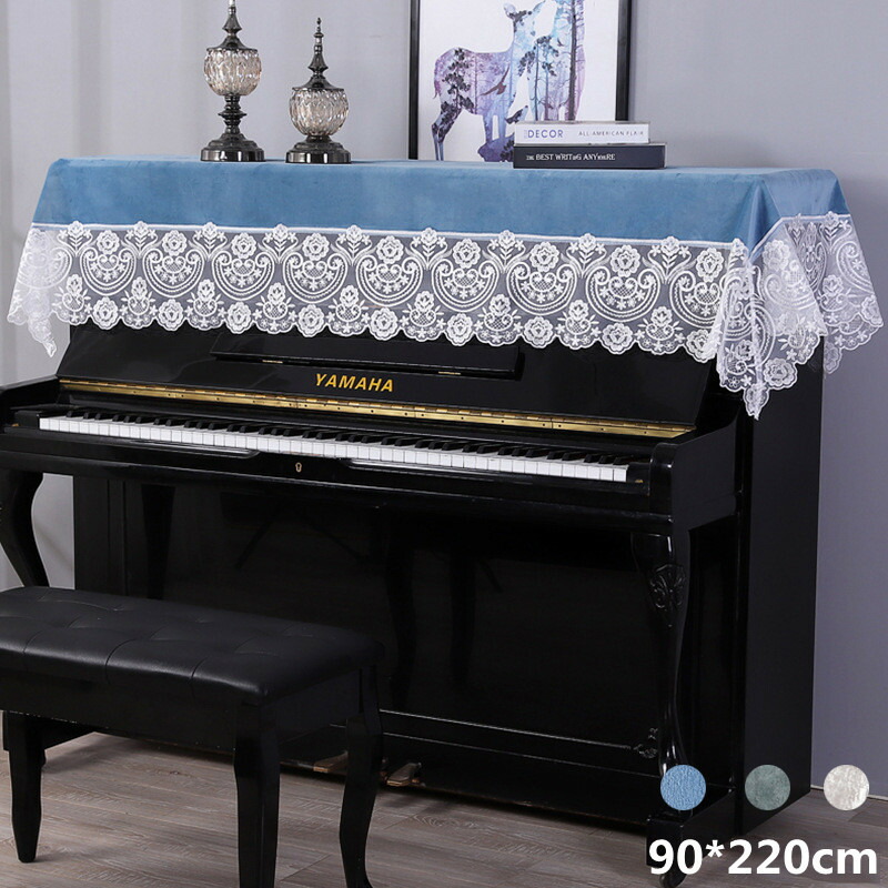 ピアノカバー ピアノトップカバー アップライト 90*220cm レース 刺繍 お洒落 上品 北欧 グレー ブルー ベージュ シンプル
