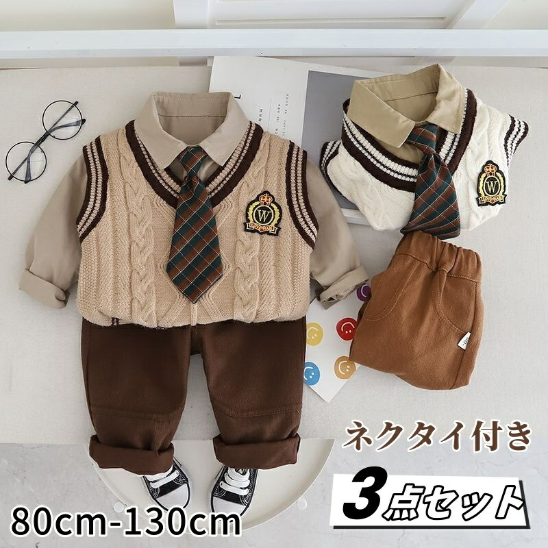 子供服 スーツ 男の子 キッズ フォーマル ニットベスト 長袖 シャツ ズボン 子供スーツ 入園式 ベビー フォーマルスーツ 子ども服 ネクタイ付き キッズスーツ ベビー服 男児 入学式 セットアップ