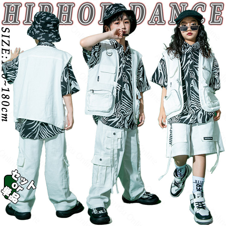 ゼブラ柄 柄シャツ 総柄 白色 ベスト キッズ ダンス衣装 セットアップ シャツ 女の子 男の子 半袖シャツ かっこいい ゆったり カジュアルシャツ トップス 短パン ジャズダンス ヒップホ ロンパン