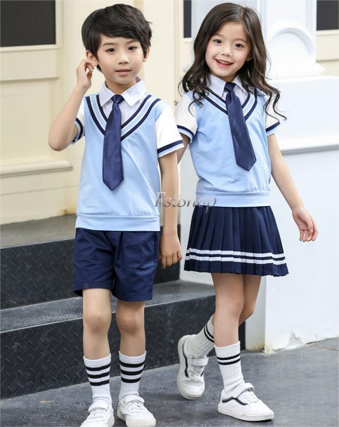 子供 入学式 半袖 スーツ 学園風 男の子 女の子 制服 上下セット藍色フォーマル 学生服 スクールシャツ キッズ ポロシャツ ジュニア プリーツスカート子どもダンス 演出服 幼稚園 中学校制服