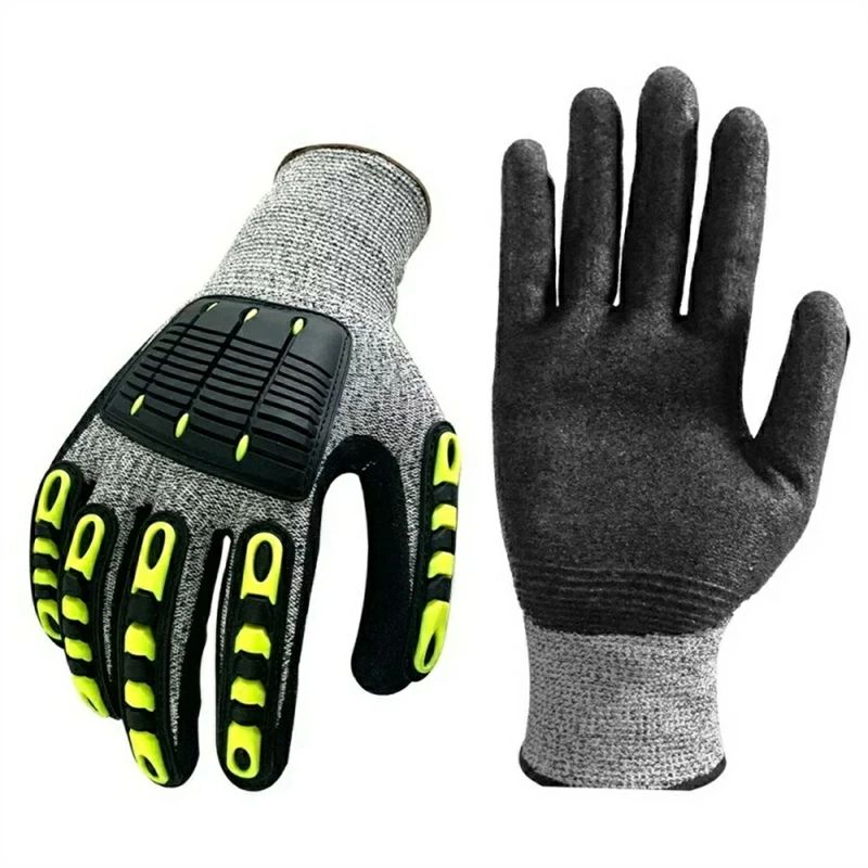 チェーンソー手袋 防振手袋 メカニックグローブ 掌当て付き 背抜き 作業手袋 耐振動 振動緩和 HPPE防刃5級 タッチパネル対応 バイク 3D立体 滑り止め 草刈り機防護 防護用 林業 チェー