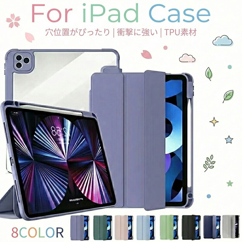 iPad ケース ipad ケース第10世代 タブレットカバー アイパッドケース A16 タブレット スタンド機能付き 軽量 薄型 衝撃吸収 10.9 10.2インチ 半透明