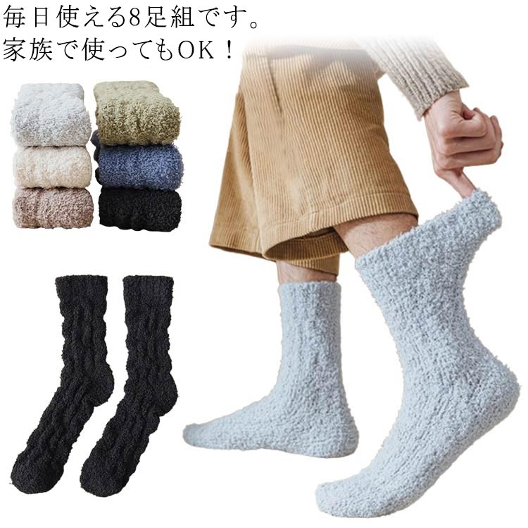 暖かい 靴下 メンズ 8足セット 冬用 ふわふわ もこもこ あったか ソックス おしゃれ 紳士 ルームソックス 防寒 ふんわりソフトタッチ 送料無料