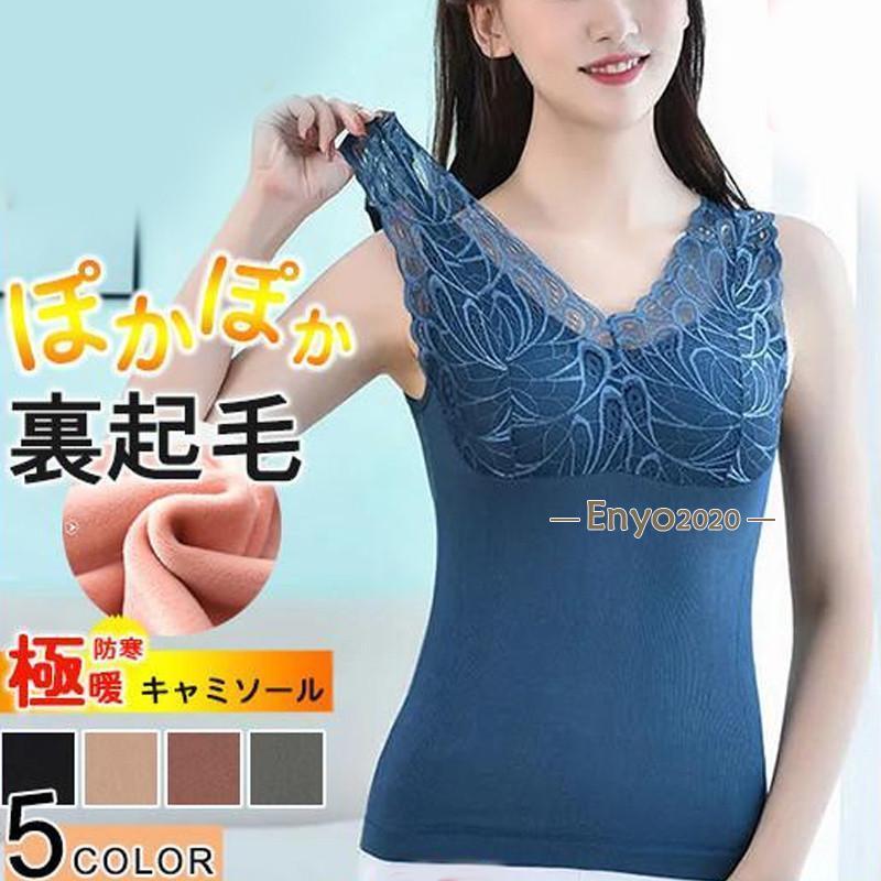 キャミソール 暖かい あったか インナー 裏起毛 タンクトップ 保温 レース Vネック カップ付 防寒 冬 下着 肌着 レディース ナイトブラ