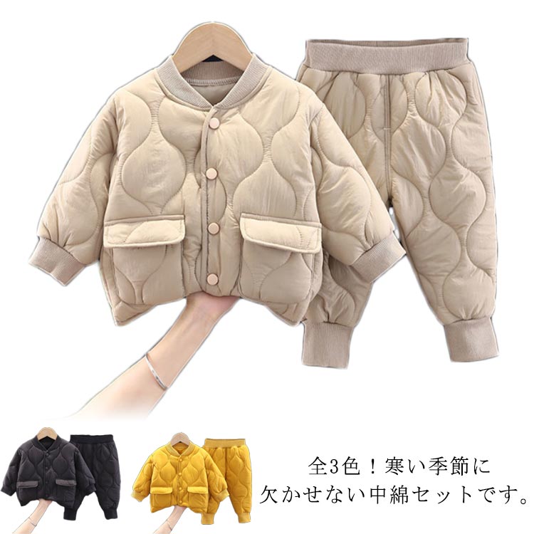 上下セット 中綿コート おしゃれ 2点セット 中綿ジャケット パンツ ベービ服 女の子 男の子 中綿入れ ズボン 保温 防寒服 120cm アウター 可愛い 無地 子ども服 こど キッズ服