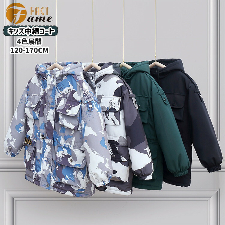 中綿コート 裏起毛 防風 暖かい 防寒ジャケット 4色展開 迷彩カモフラージュ グレー ブラック グリーン 長袖 軽量 子ども用 小学生用 120-170cm 通学通園用 レディース 大きいサ 秋冬用