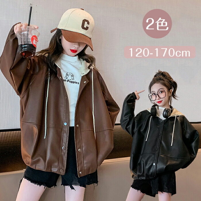 レザージャケットキッズ ライダース 女の子 アウター ニット 帽子 ライダースジャケット PU スタジャン PUレザー キッズジャケット あたたかい かっこいい 長袖 寒さ対策 男女 裏起毛