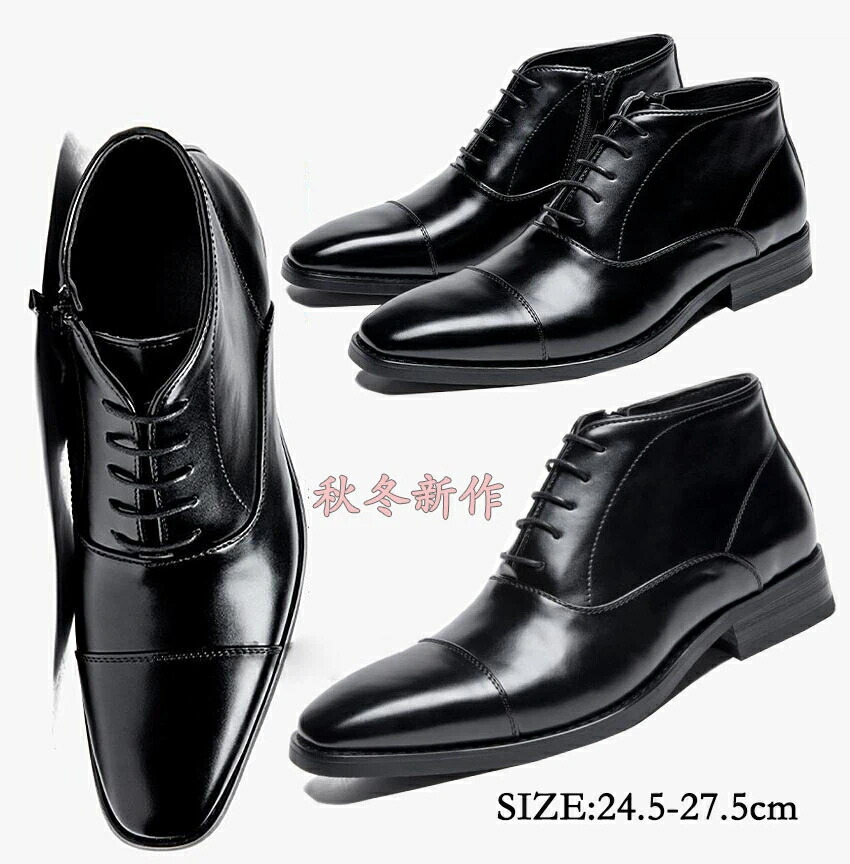 秋冬用 ビジネス シューズ メンズ フォマール靴 ショートブーツ ハイカット 内羽根 革靴 紐靴 ファスナー付き 履きやすい 24.5 25 25.5 26 26.5 27 27.5 大きいサイズ有