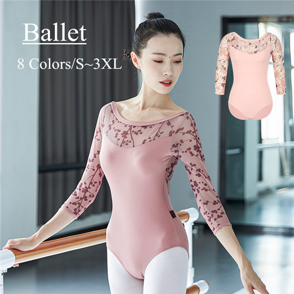 バレエ 衣装 花柄 レオタード ジュニア コスチューム カラフル バレエ品 バレエレオタード 大人 ラウンドネック 袖あり 練習 ダンス レッスン着 S L XL d M
