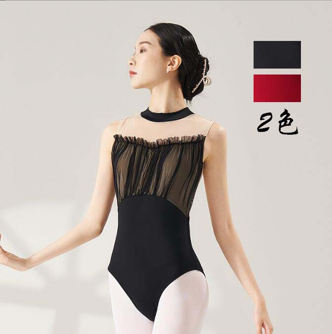 バレエ レオタード 大人 ハイネック スカートなし シースルー バレエレオタード 美シルエット オシャレ 大人バレエ 大人用 レッスン着 練習 体操 バレエ用品 新体操 バレエウェアダンス
