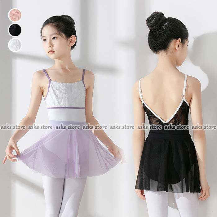バレエレオタード 子供用 キッズ バレエ衣装 女の子 キャミソール スカート付き 配色 新体操 ダンス ステージ衣装 シンプル 発表会 レッスン着 バレエ 子供 シフォン 子ども レオタード