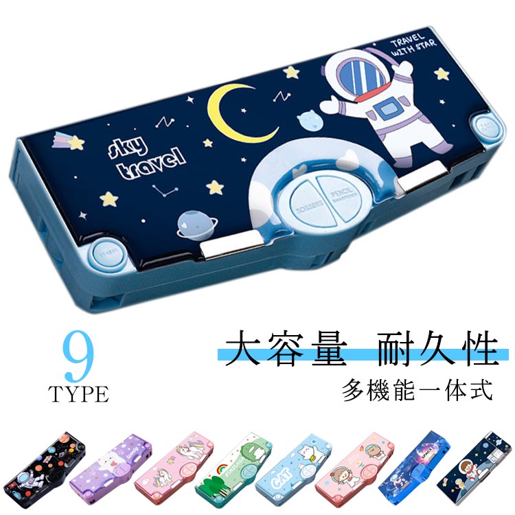 筆箱 両面開きペンケース 小学生 多機能 大容量 ペンホルダー 筆入れ 箱型 鉛筆削り付き ハサミ 時間割表 消しゴム テープカッター 文具ポーチ 女の子 かわいい マグネット ツールペンケー 男の子