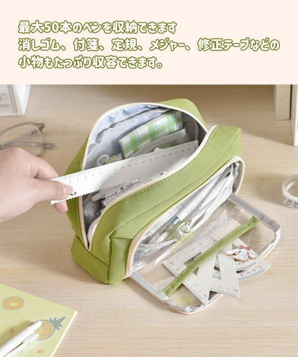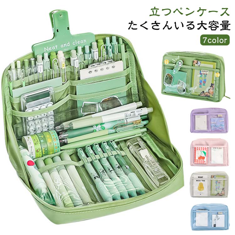 クリアポケット付き 自立型クリアペンケース 6 かわいい 高校生女子 オシャレ 大容量 シンプル 文具 韓国 おしゃれ 可愛い スリムポーチ 大学生 中学生 ブ