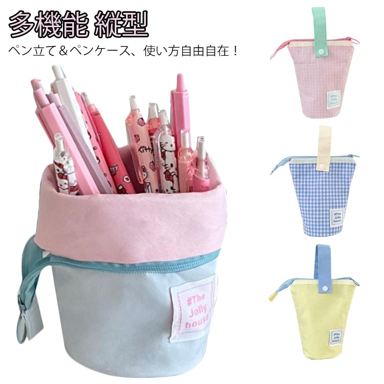 ペン立て ポーチ 自立可能 化粧ポーチ ペンケース 大容量 縦型 縦型ペンケース 多機能 小物入れ 中学生 学生 女の子 パステルカラー 卓上収納 文房具 持ち手つき ガールズ 新学期 入学 入 筆箱
