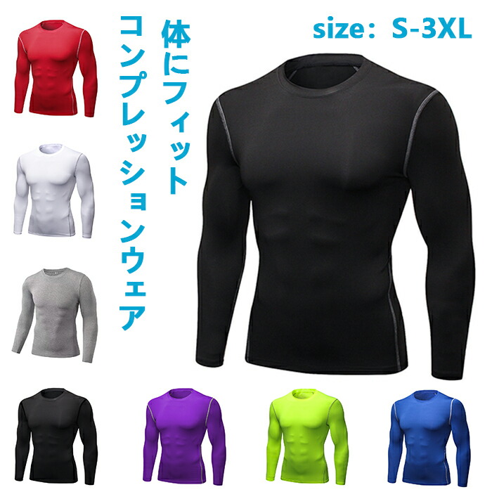 コンプレッションウェア メンズ シャツ アンダーシャツ 長袖 丸首 メンズ コンプレッションインナー 吸汗速乾 抗菌防臭 コンプレッションウェア オールシーズン スポーツインナー