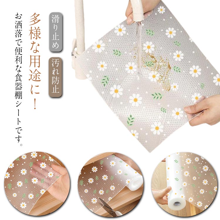 半透明 花柄 食器棚シート 滑り止め 凸点 50×500cm 保護マット 食器シート 60×500cm 引き出しシート 接着剤不要 30×500cm タンスシート 防虫 EVA製 お洒落 冷 裁断可能
