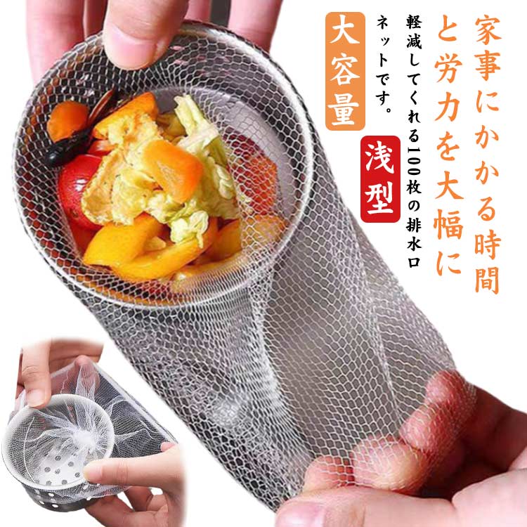 水切りネット 浅型 水切袋 シンク用 使い捨て 排水口ネット 洗面台 ゴミ受け 大容量 100枚セット 浴室 排水溝 流し台 台所用 キッチン用品 髪の毛取り ヘアストッパー 家 お風呂