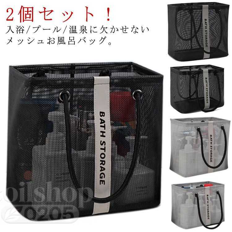 2個セット 水切り スパバッグ 小さめ 温泉バッグ カジュアル お風呂バッグ サウナバッグ 通気 おしゃれ 海 ジムバッグ 持ち手付き 小型 旅行 軽量 メッシュ 大容量 銭湯 マチ幅広