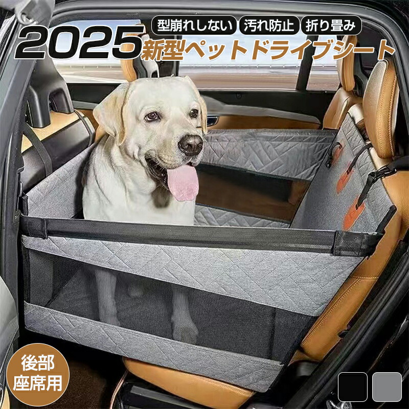 ペット用ドライブシート ドライブシート 全車種 車ペットシート 後部座席 可視メッシュ窓 飛び出し防止リード付き 汚れ防止 防水 耐摩 滑り止め 簡単取り付け 折り畳み式 ブラック