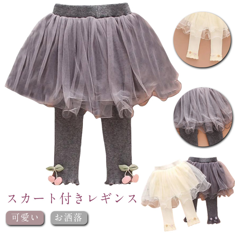 キッズ スカート付き レギンス パンツ 子供用 チュールスカート スカッツ レギンスパンツ 女の子 ボトムス