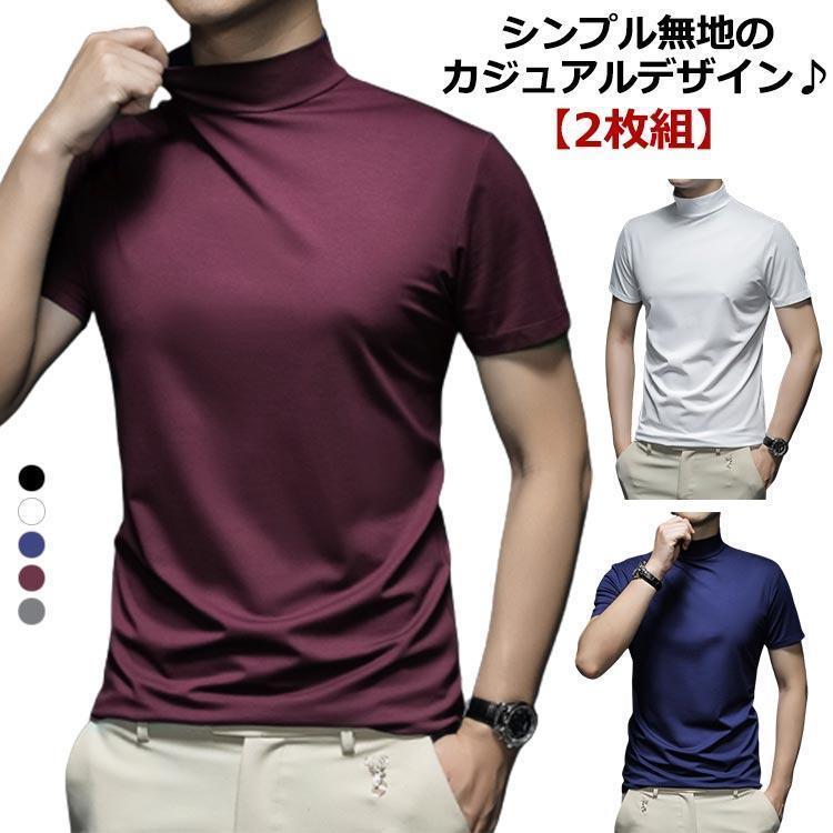 ハイネック 半袖 メンズ tシャツ メンズtシャツ モックネック ゴルフ 無地 モックネックシャツ ハイネ ストレッチ