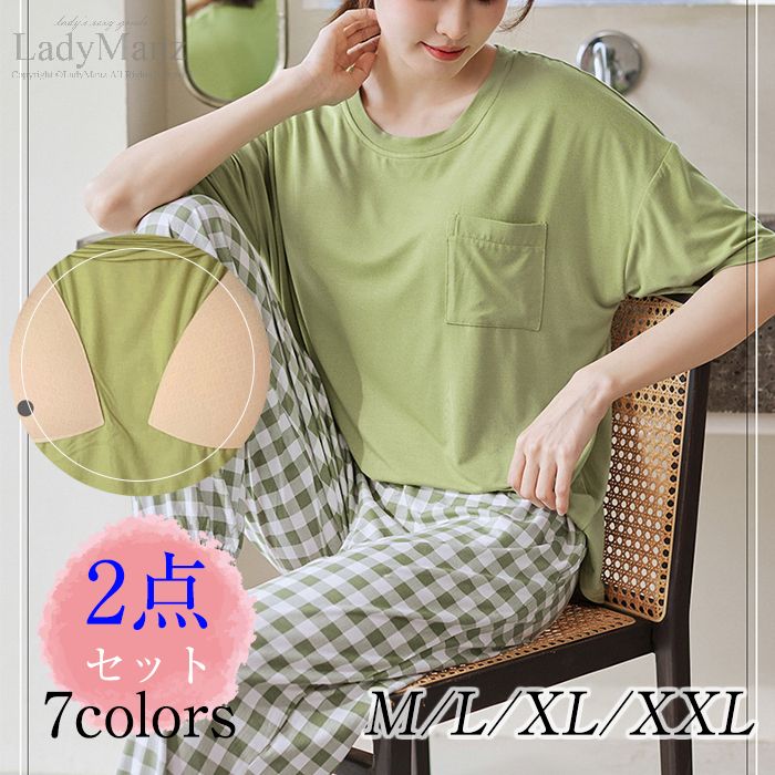 人気 パジャマ 上下セット ロングパンツ ルームウェア ナイトウェア パッド入り レディース 半袖 女性用 春夏 インナー 通気性 ヨガウェア 部屋着 マルチカラー 着替え ゆっ 大人かわいい