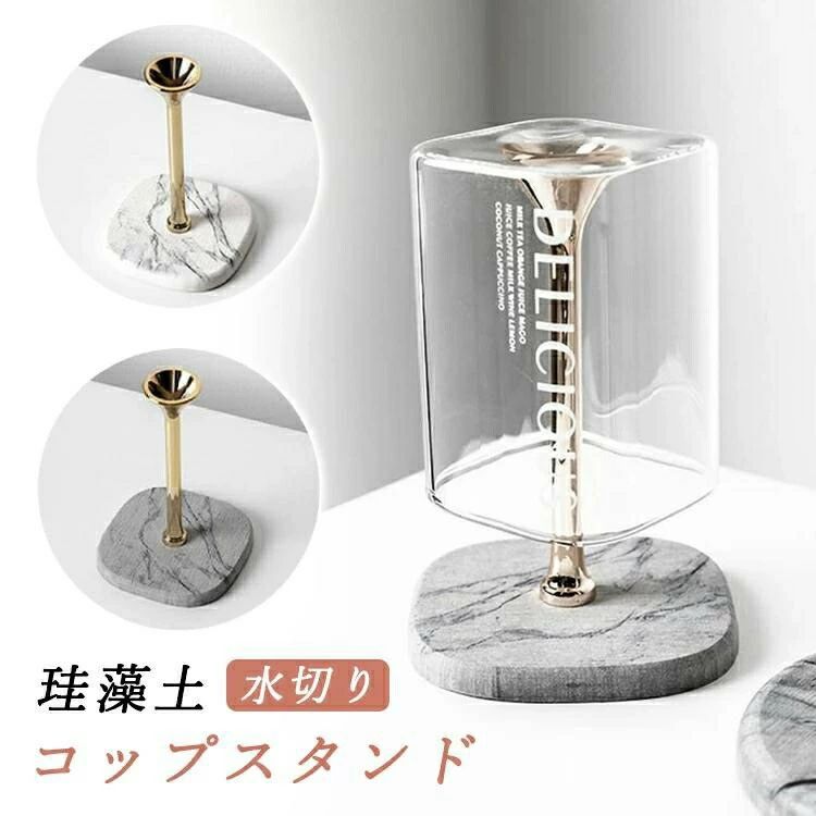 珪藻土 コップスタンド 水切りトレー 白 シンプルデザイン 浮かせる収納 キッチン 清潔 グラスホルダー 洗面所
